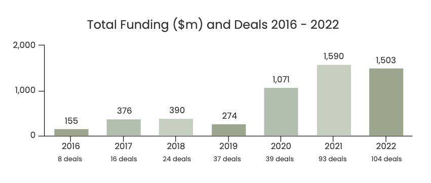 1οΈβ£ Overall funding in the sector was $1.5bn, just 5% shy of the total funds raised in 2021. However, the number of transactions increased by over 10% which demonstrated a continued appetite for the sector, despite a slowdown in private markets overall.